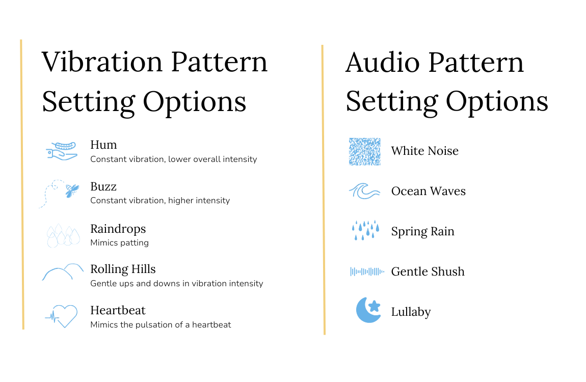 - Five different soothing sounds and vibration modes so you can find what combination works best for your child